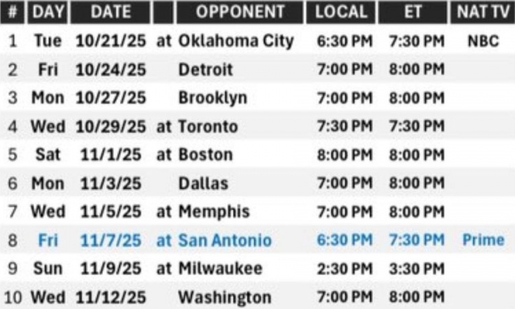 8月15日訊 NBA2025-26賽季完整賽程今日出爐。