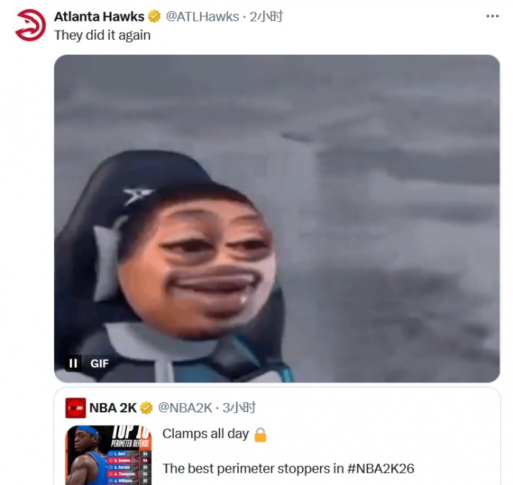 對此,老鷹官推曬圖評論道:“他們又來(lái)了?!?/p>