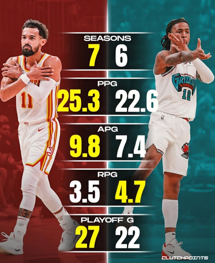 8月19日訊 今天,美媒ClutchPoints對比莫蘭特和特雷-楊生涯數據。
