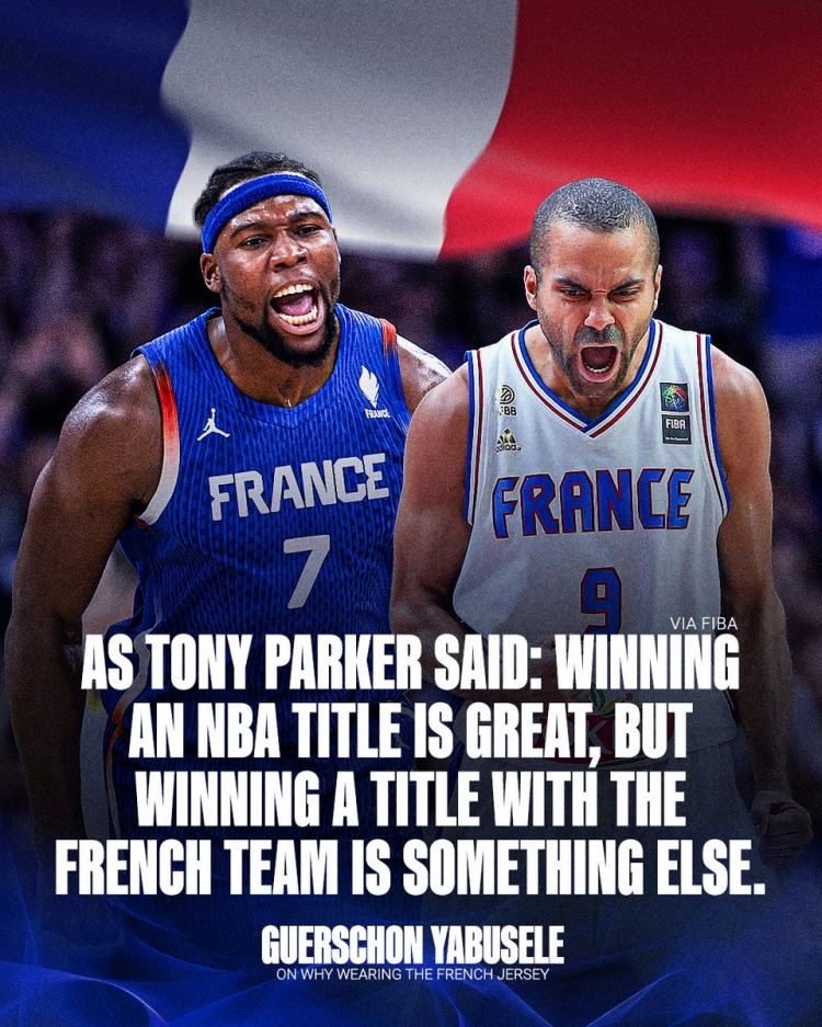 亞布塞萊說(shuō)道:“就像托尼-帕克說(shuō)的,贏(yíng)得一個(gè)NBA總冠軍固然很棒,但是在法國男籃贏(yíng)得一個(gè)冠軍則更是另一番意義?!?/p>