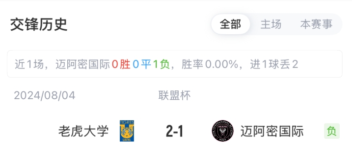 8月21日訊?聯(lián)盟杯1/4決賽,邁阿密?chē)H迎戰老虎大學(xué)比賽即將打響。賽前首發(fā)出爐,本場(chǎng)梅西缺陣。