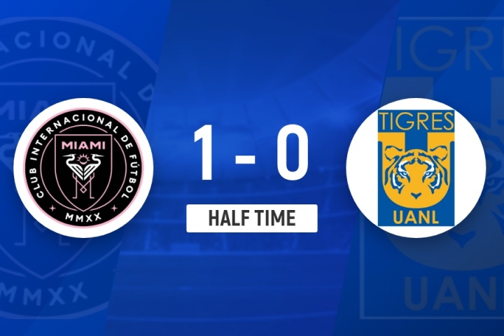 上半場(chǎng)補時(shí)4分鐘,邁阿密?chē)H1-0老虎大學(xué)。