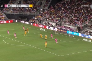 第56分鐘,邁阿密后場(chǎng)解圍不遠,萊內茲右路一腳遠射打在立柱上彈出?!?/p>