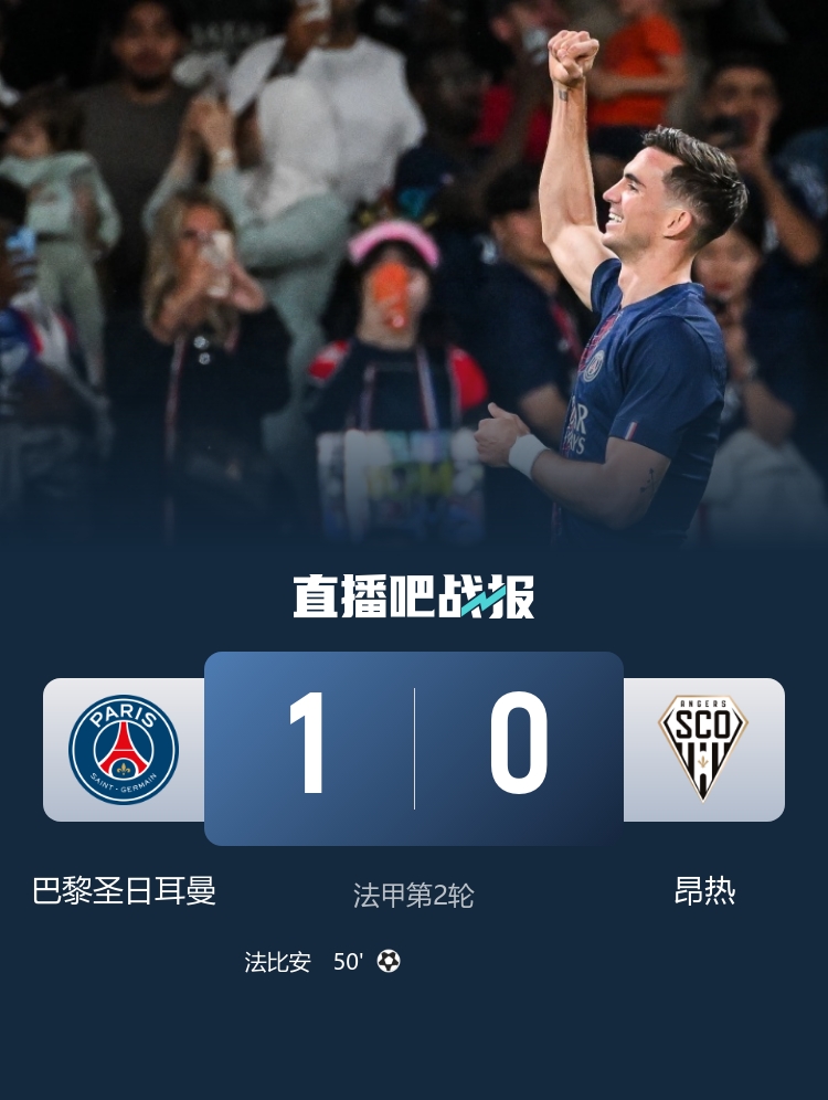 全場(chǎng)比賽結束,巴黎圣日耳曼主場(chǎng)1-0小勝昂熱。