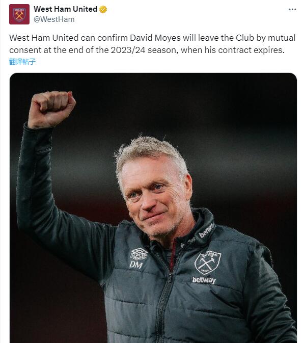 在去年的5月,西漢姆宣布將在賽季末與功勛主帥莫耶斯分手。那時(shí)候的莫耶斯,是西漢姆場(chǎng)均得分最高的主帥(執教20場(chǎng)以上)。他還率西漢姆得到隊史最高的英超排名,并連續兩年進(jìn)前7。此外他還幫助鐵錘幫奪得歐協(xié)聯(lián)冠軍,這也是西漢姆自1980年的足總杯后的第一個(gè)重要賽事冠軍,也是球隊自1965年來(lái)的首個(gè)歐戰獎杯。