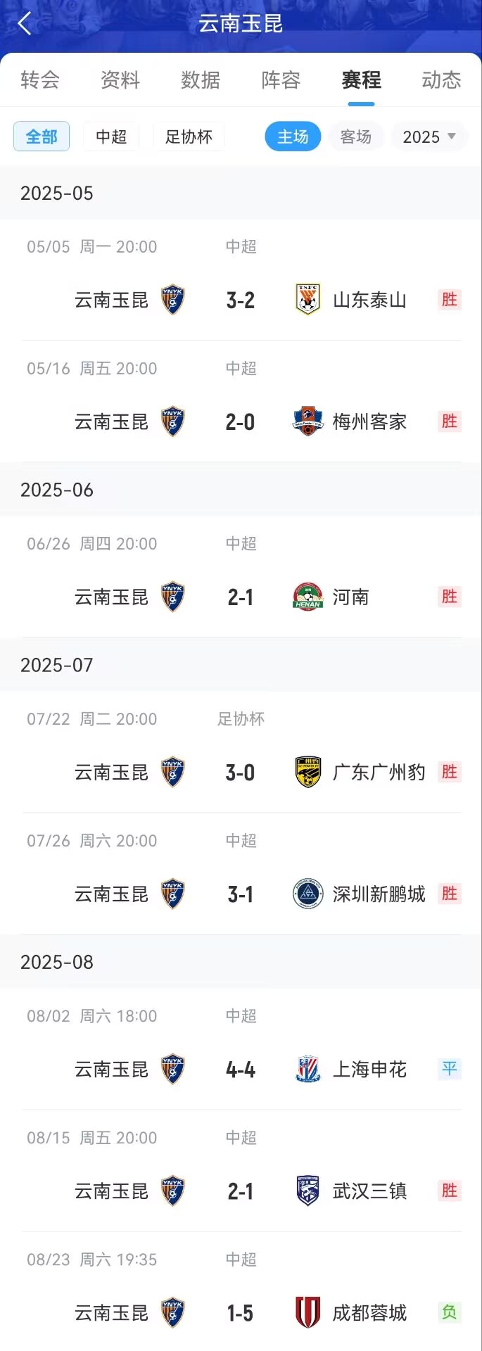 08月23日訊 中超第22輪,玉昆主場(chǎng)1-5不敵蓉城。