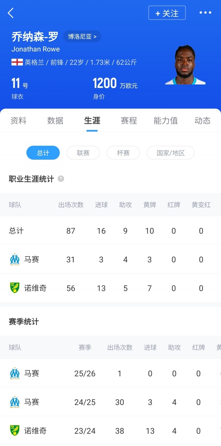 喬納森-羅,現年22歲,英格蘭前鋒,上賽季外租至馬賽,出戰30場(chǎng)比賽,打進(jìn)3球,助攻4次,并于賽季末1450萬(wàn)歐被馬賽買(mǎi)斷。