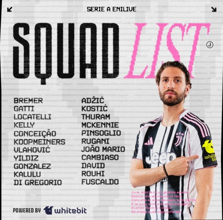 8月24日訊 意甲首輪尤文將迎戰帕爾馬,球隊官方也公布了本輪大名單,具體如下: