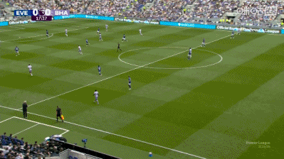 08月24日訊 布萊頓vs埃弗頓比賽第17分鐘,三笘薫接后場(chǎng)長(cháng)傳,高難度挑球甩飛兩人,凌空抽射擊中橫梁彈出。