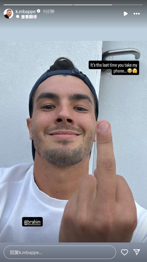 姆巴佩發(fā)現迪亞斯偷偷拿自己手機拍了一張豎中指的照片:這是你最后一次拿我手機了...