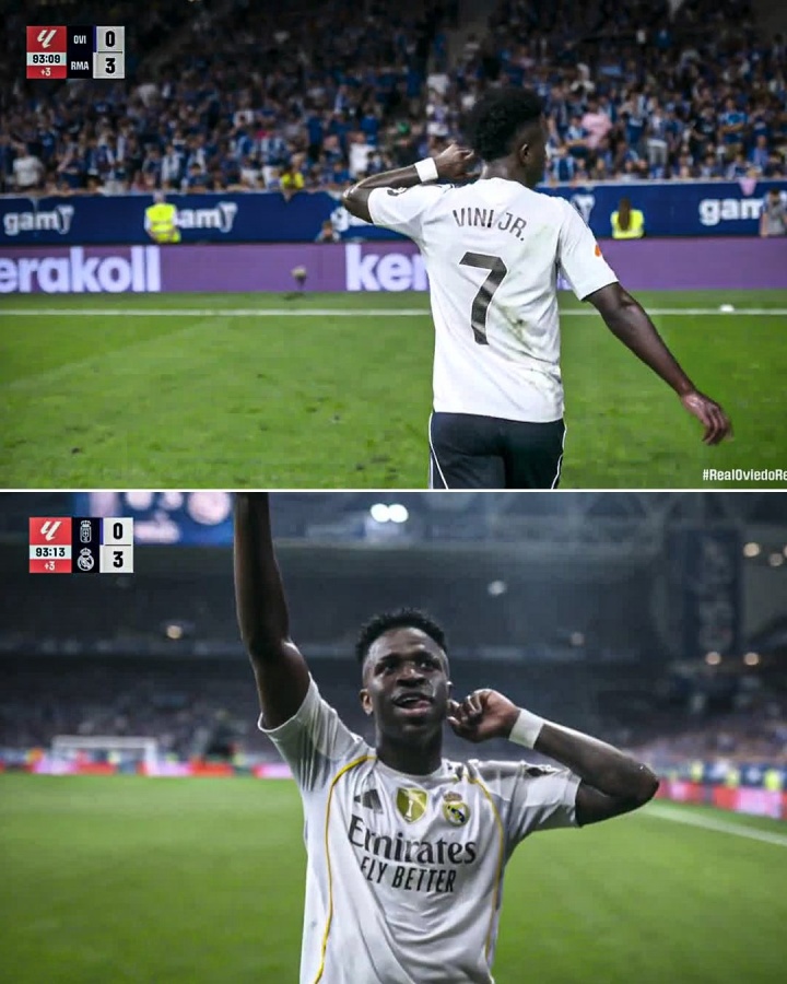 維尼修斯在皇馬戰勝皇家?jiàn)W維耶多的比賽中再次成為輿論焦點(diǎn),討論主要在于他對裁判和看臺的手勢,其中最引人注目的是他向主場(chǎng)球迷豎起兩根手指的動(dòng)作,其含義是“去西乙吧”。