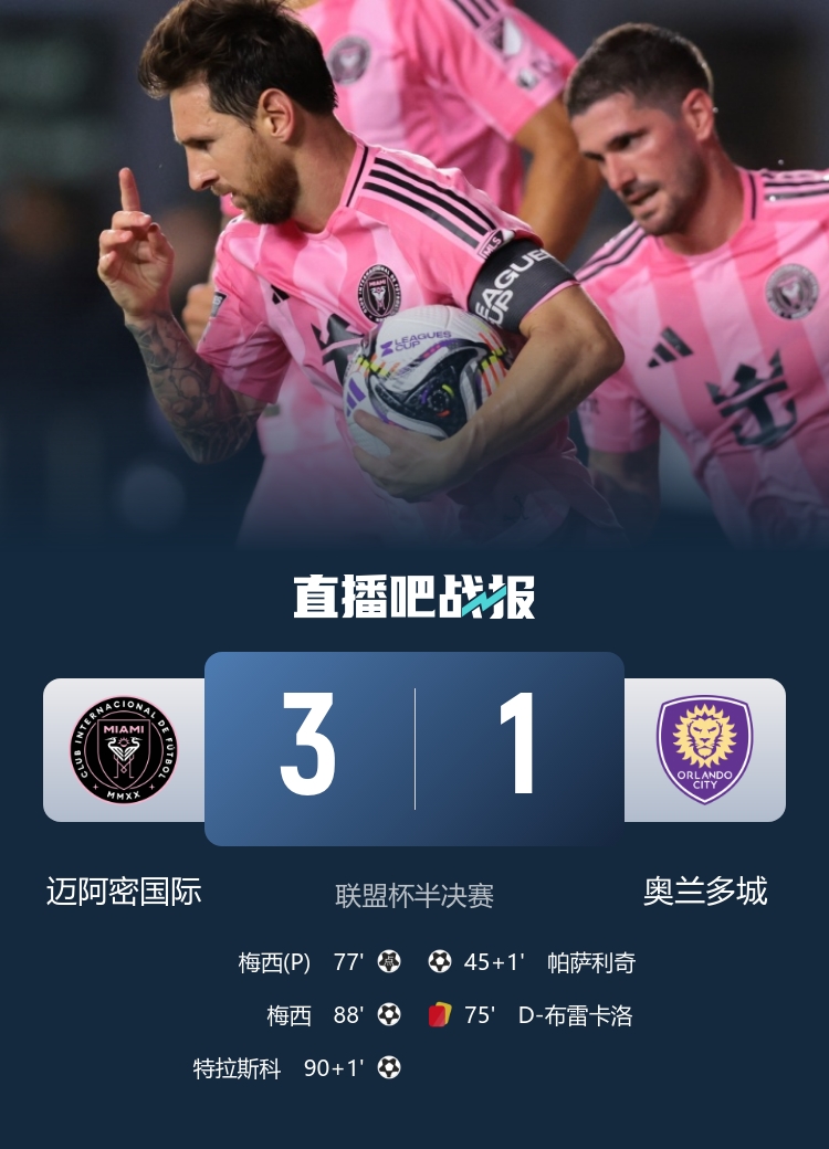 全場(chǎng)比賽結束,邁阿密?chē)H3-1奧蘭多城。
