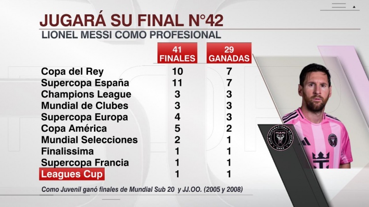 8月28日訊 聯(lián)盟杯半決賽,梅西梅開(kāi)二度,邁阿密?chē)H淘汰奧蘭多城晉級決賽。梅西將迎來(lái)他職業(yè)生涯的第42場(chǎng)決賽。