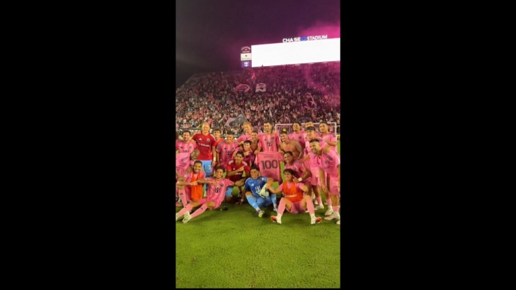 現年37歲的布斯克茨2023年加盟邁阿密?chē)H,這位西班牙中場(chǎng)各項賽事已經(jīng)為球隊出戰100場(chǎng)比賽,在淘汰奧蘭多城的賽后,布斯克茨獲贈一件紀念球衣,全隊合影留念慶祝這一時(shí)刻。