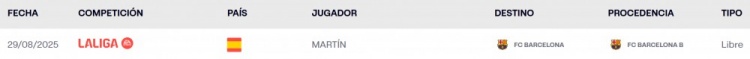 8月29日訊 西甲官方網(wǎng)站顯示,巴薩已經(jīng)為杰拉德-馬丁完成注冊,球員將會(huì )身披18號球衣。