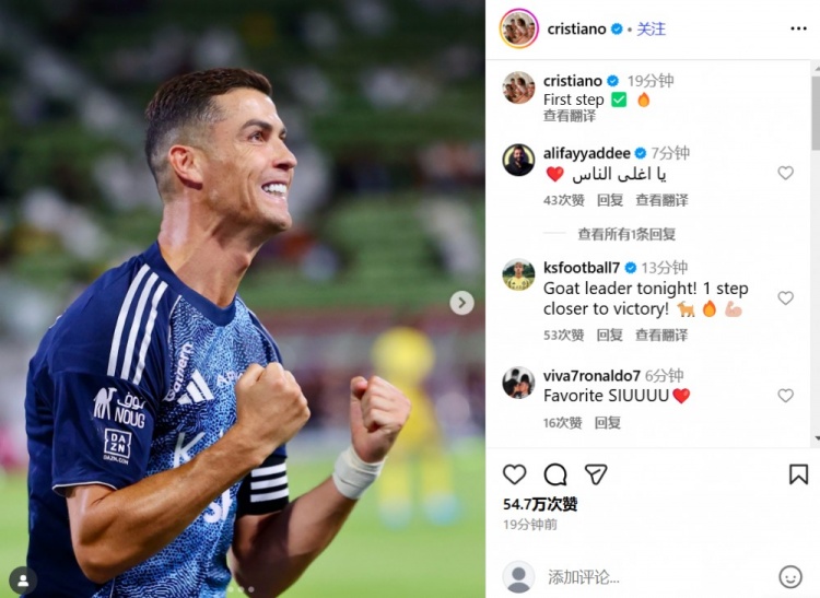 在社交媒體上,C羅曬出了自己的慶祝照并配文道:走出第一步!