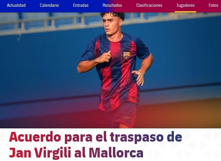 8月30日訊 本周巴薩官方宣布邊鋒小將揚-維爾吉利轉會(huì )加盟馬洛卡,而揚-維爾吉利隨后發(fā)文告別巴薩。