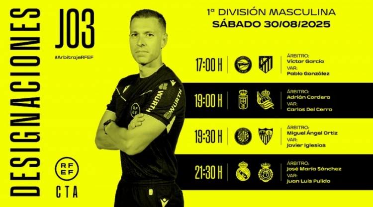 8月30日訊 西甲官方公布了當地時(shí)間周六進(jìn)行的4場(chǎng)西甲比賽的裁判安排,其中何塞-馬里亞-桑切斯將執法皇馬VS馬洛卡。