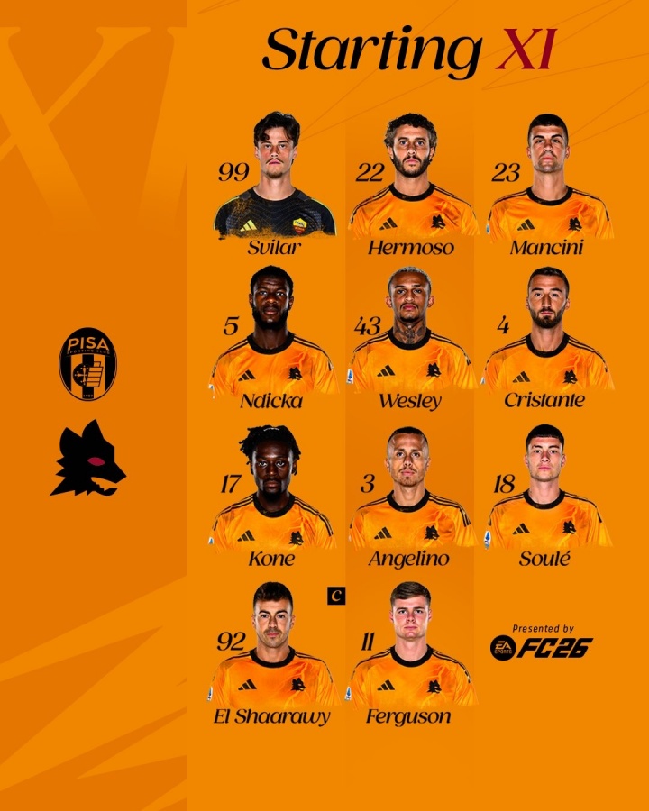 8月31日訊 意甲第2輪比賽,羅馬前往客場(chǎng)挑戰升班馬比薩。目前,紅狼首發(fā)陣容已經(jīng)公布,新援埃文-弗格森出戰,馬努-科內、沙拉維在列。