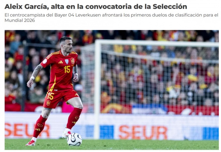 8月31日訊 西班牙國家隊發(fā)布官方公告,宣布補招勒沃庫森28歲中場(chǎng)阿萊克斯-加西亞進(jìn)世預賽名單。