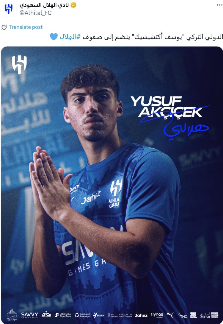 9月2日訊 根據利雅得新月官推發(fā)布的消息,該俱樂(lè )部從費內巴切隊簽下土耳其后衛阿克塔什奇克,轉會(huì )費為2200萬(wàn)歐元。
