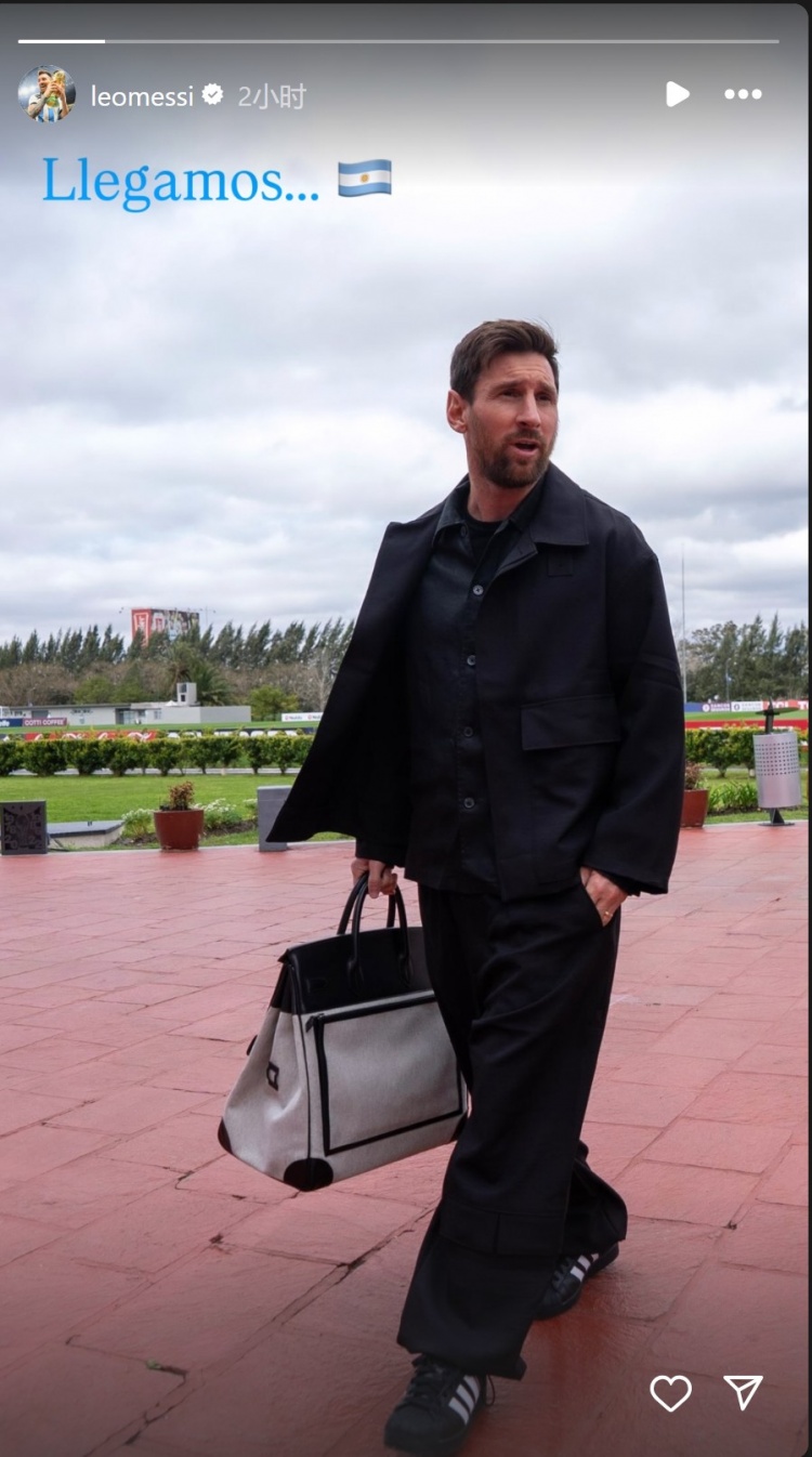 梅西社媒曬出拎著(zhù)包來(lái)到國家隊報到的照片,配文:“我們到了?!?/p>
