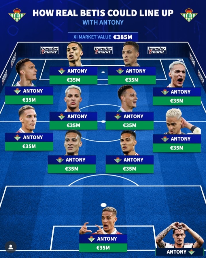 9月2日訊 五大聯(lián)賽夏窗關(guān)閉,德轉整活安東尼,貝蒂斯全員安東尼。