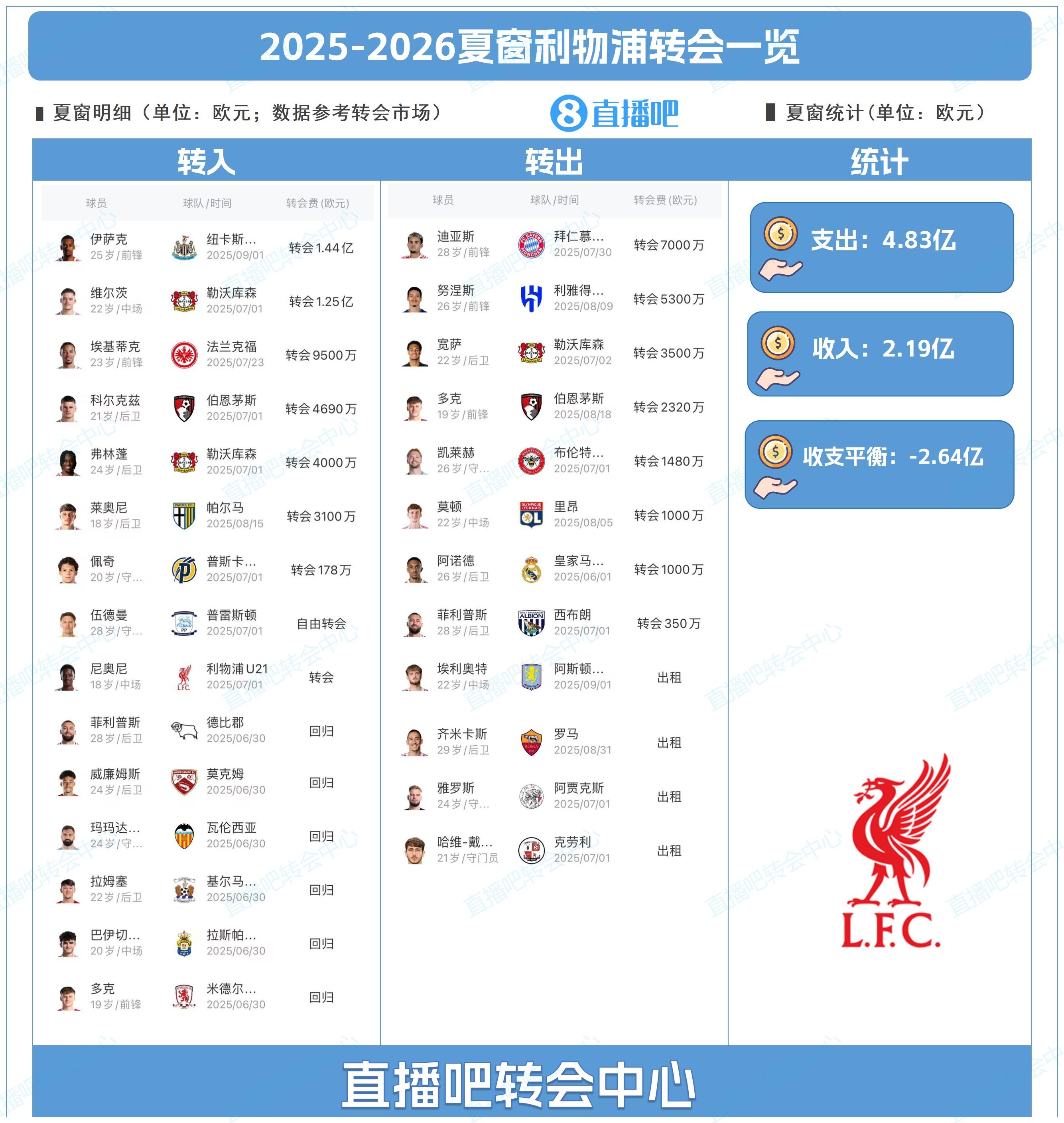 為吧友們總結了利物浦今夏的轉會(huì )操作,吧友們能打幾分?