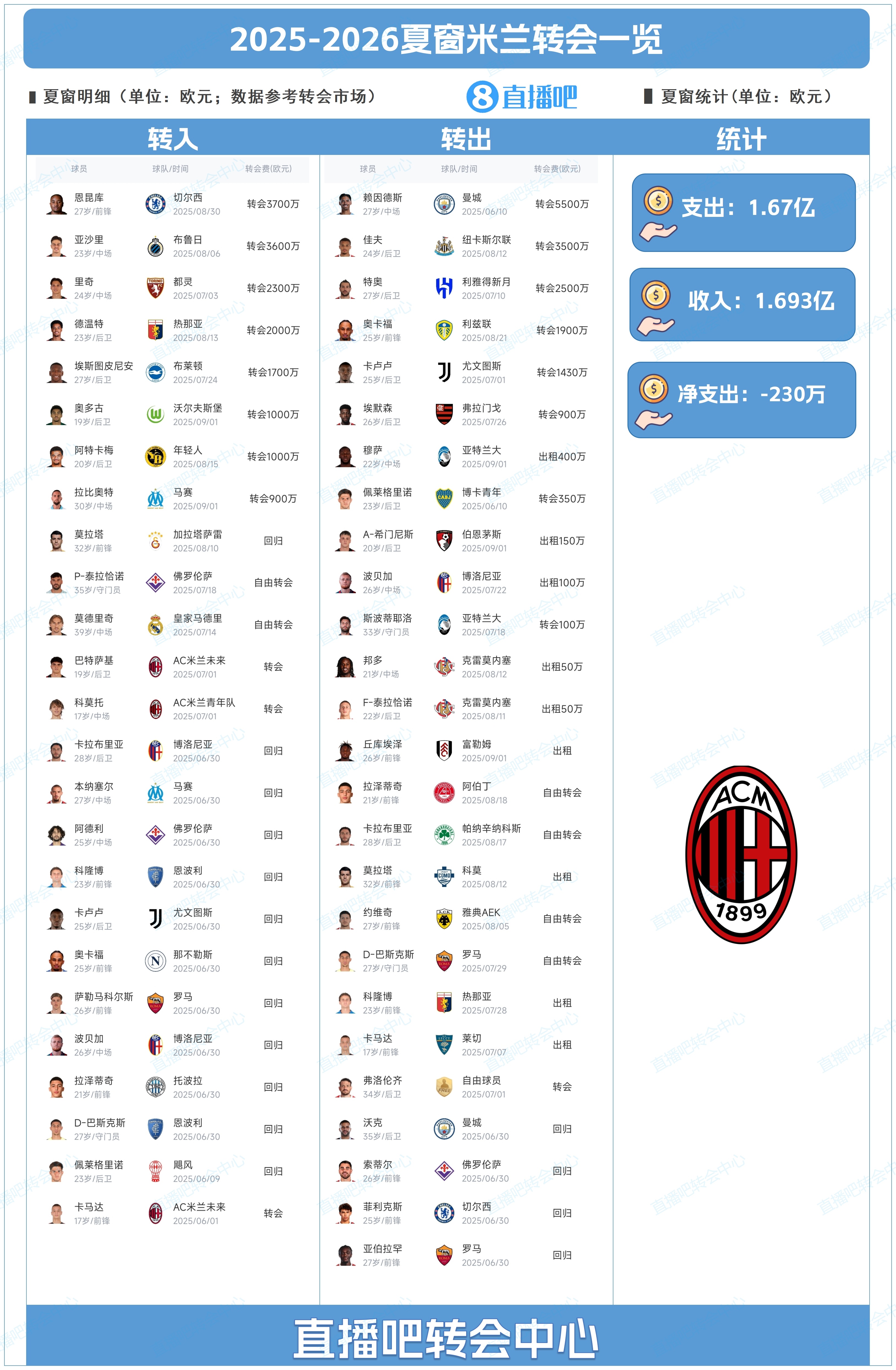 為吧友們總結了AC米蘭今夏的轉會(huì )操作,吧友們能打幾分?