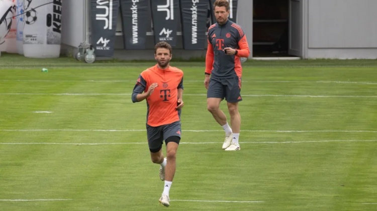 52分鐘后訓練結束。穆勒收拾了標志碟、訓練環(huán)和人形障礙模型,還為帕夫洛維奇拾起一件運動(dòng)衫,隨后返回更衣室。新任康復主管本杰明-索默(43歲/8月從法蘭克福加盟)也短暫到場(chǎng)觀(guān)看了草坪訓練。