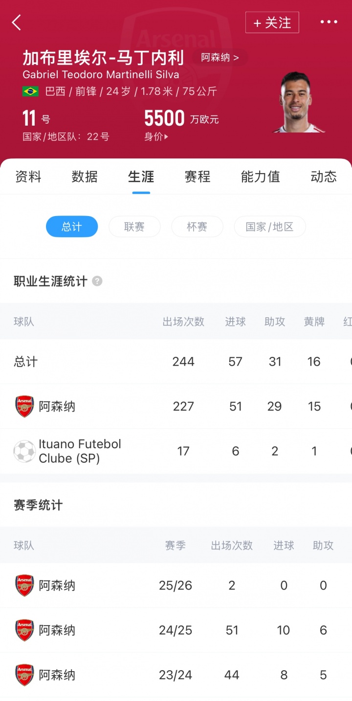 報道稱(chēng),夏窗開(kāi)啟之初,阿森納愿意出售馬丁內利。但槍手為這位邊鋒的估值超6000萬(wàn)鎊,而其他球隊對他的估值僅在4000萬(wàn)鎊左右,這一差價(jià)讓阿森納打消了主動(dòng)兜售球員的念頭,以避免陷入漫長(cháng)的轉會(huì )拉鋸戰。