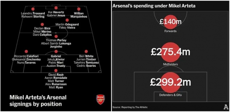 在2025夏窗之前,阿森納已經(jīng)完成了超過(guò)7億英鎊的引援支出,三線(xiàn)建設資金分布嚴重不均。