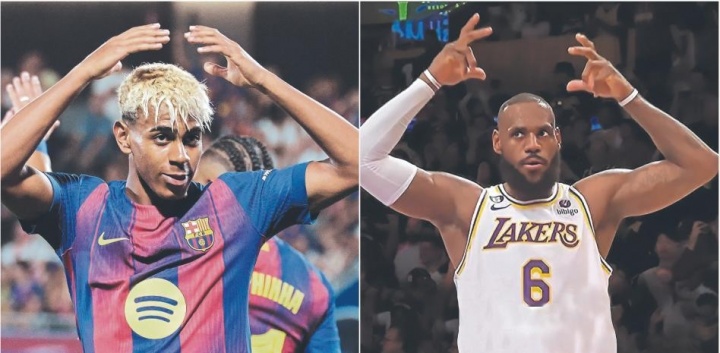 這位巴薩的新10號在亞洲行對陣首爾FC的第二場(chǎng)友誼賽中,開(kāi)始以這種特殊方式慶祝進(jìn)球。他打入兩球,并用這種慶祝動(dòng)作宣告自己:捶胸并自我加冕。這一慶祝動(dòng)作復刻了籃球史上最偉大球員之一、同樣自封為國王(King)并作為NBA近二十年標桿的勒布朗-詹姆斯多年來(lái)的行為。詹姆斯一直被認為是一位能夠創(chuàng )造歷史的球員,即使是在他進(jìn)入NBA之前。而亞馬爾作為足球運動(dòng)員,正追隨其腳步,打破幾乎所有的早熟紀錄。
