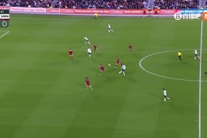 第43分鐘,阿爾馬達橫向盤(pán)帶兜射遠角,皮球偏出底線(xiàn)?!?/p>