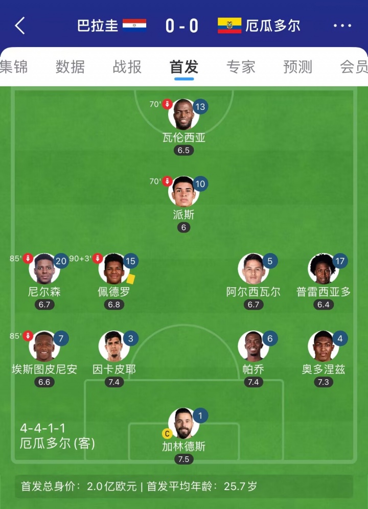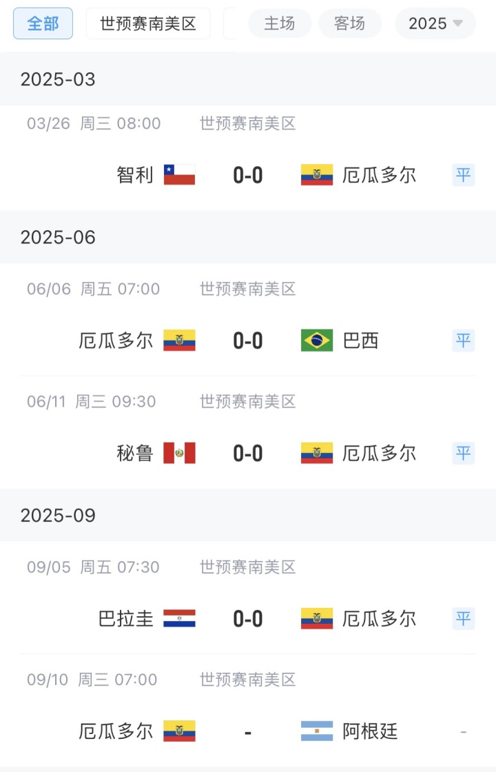 09月05日訊 世預賽南美區倒數第2輪,厄瓜多爾客場(chǎng)0-0戰平巴拉圭,連續4場(chǎng)比賽0-0,末輪將主場(chǎng)迎戰最強火力、打入31球的阿根廷。