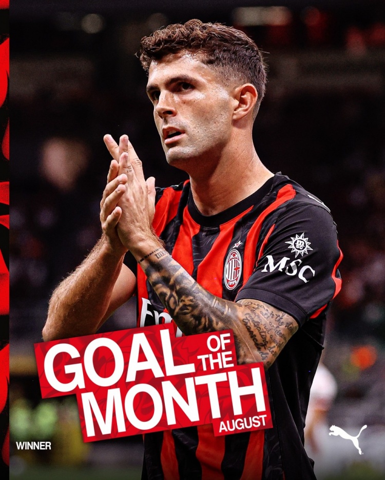 9月6日訊 米蘭官方宣布,普利西奇對陣巴里的破門(mén)當選隊內8月最佳進(jìn)球。