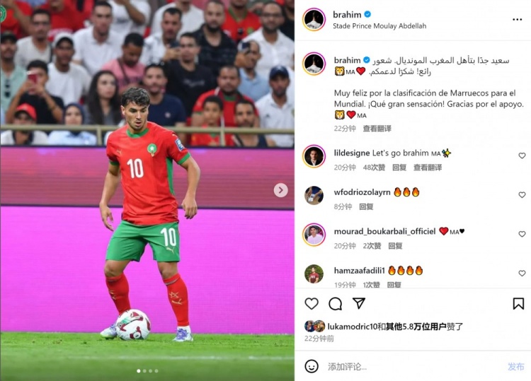 迪亞斯此役為摩洛哥首發(fā)出戰,他在社交媒體上曬出比賽照片,配文:“為摩洛哥晉級世界杯感到無(wú)比欣喜,多么美妙的感覺(jué)!感謝大家的支持?!?/p>