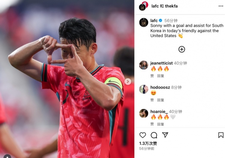 賽后韓足協(xié)和洛杉磯FC在ins上一同發(fā)布孫興慜標志性的“拍照”慶祝動(dòng)作照,并配文寫(xiě)道:“在與美國隊的友誼賽中,Sonny為韓國隊傳射建功?!?/p>