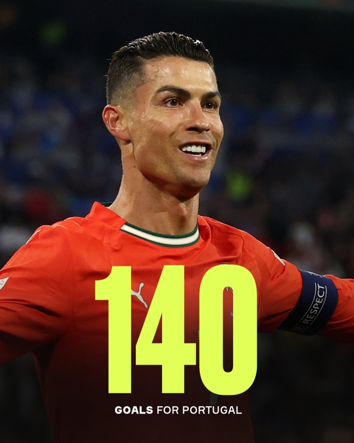 9月7日訊 C羅在對陣亞美尼亞的比賽中梅開(kāi)二度,已經(jīng)打進(jìn)140個(gè)國家隊進(jìn)球。