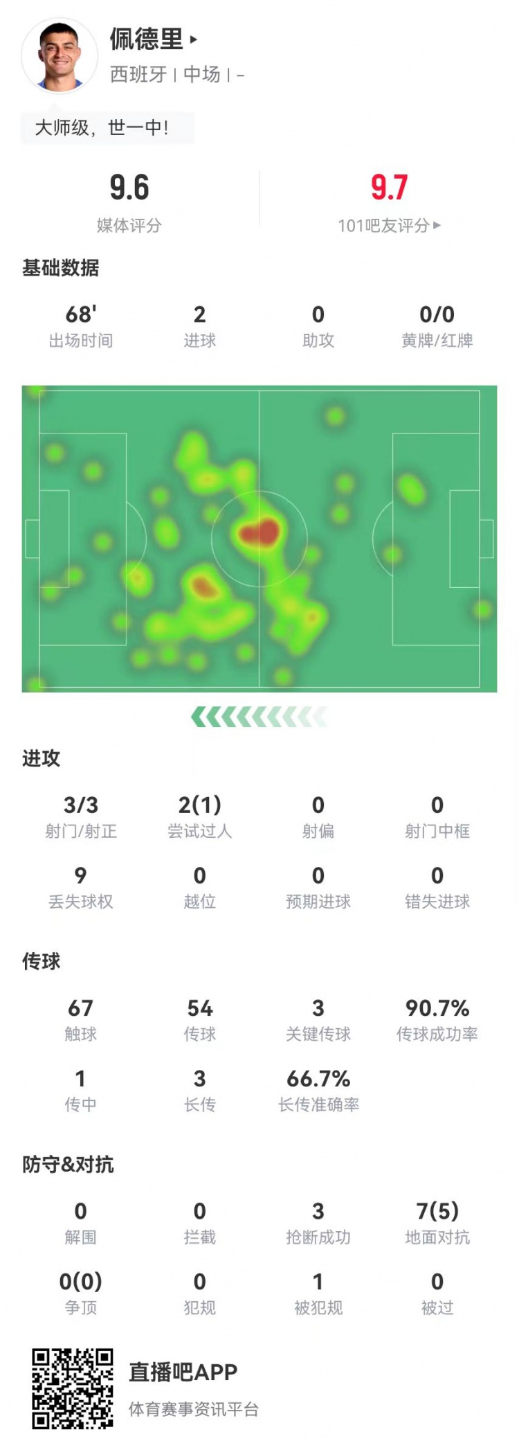 9月8日訊 西班牙在本輪世預賽6-0領(lǐng)先土耳其,佩德里本場(chǎng)數據如下: