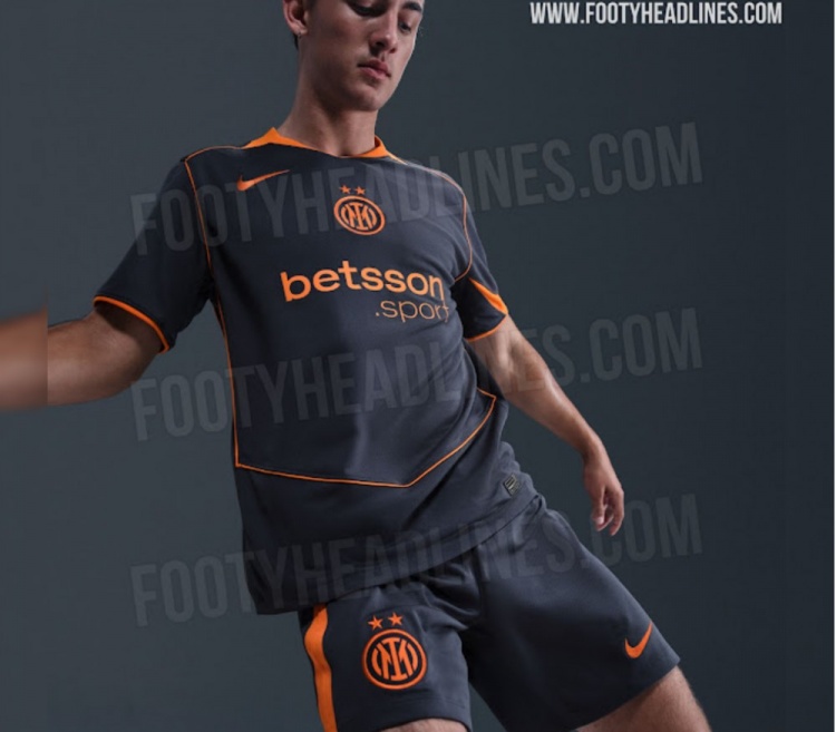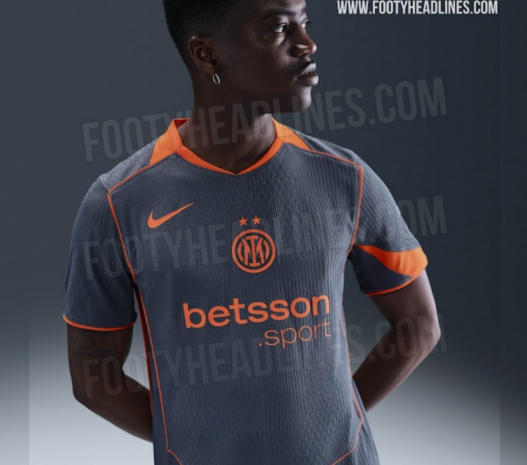 這款球衣采用深藍色(雷霆藍)為主色調,并配以醒目的橙色標志和裝飾(安全橙)。設計靈感來(lái)源于2000年代中期的Total 90系列,這款耐克為國際米蘭打造的25-26賽季第三球衣將于2025年9月上市。