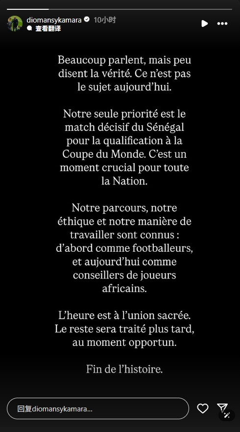 我們唯一的優(yōu)先事項,就是塞內加爾在世界杯預選賽的關(guān)鍵戰。這對整個(gè)國家而言都是至關(guān)重要的時(shí)刻。