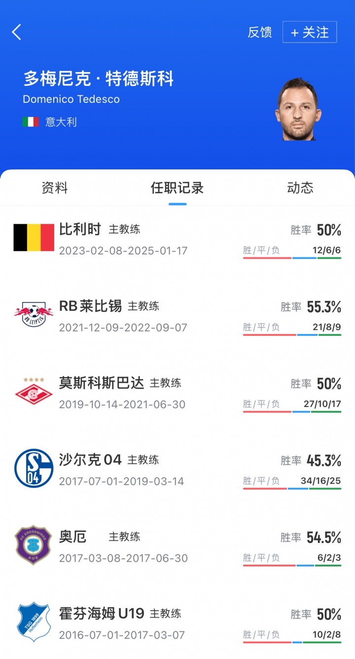 39歲前比利時(shí)隊主帥特德斯科,此前曾執教沙爾克04、莫斯科斯巴達、RB萊比錫等球隊,他的上一份工作是2023年2月至2025年1月執教比利時(shí)國家隊,取得12勝6平6負后下課。特德斯科將接替此前下課的穆里尼奧。