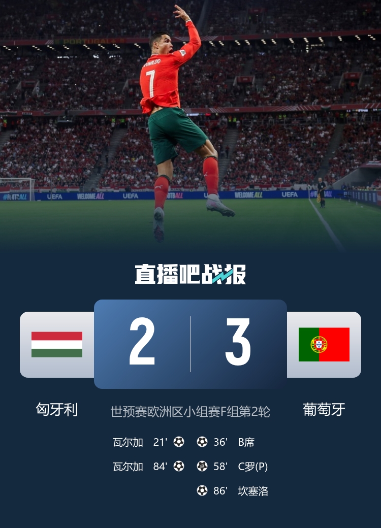 全場(chǎng)比賽結束,葡萄牙客場(chǎng)3-2戰勝匈牙利。