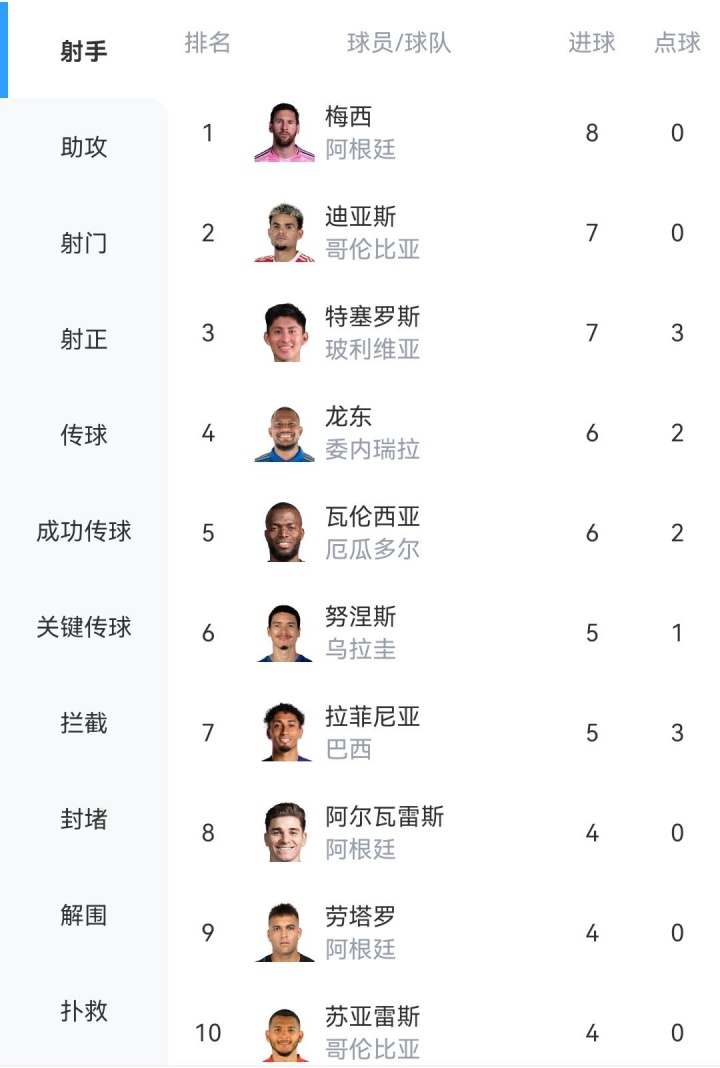 球員方面,梅西以8球榮獲南美世預賽射手王,J羅則是助攻王。
