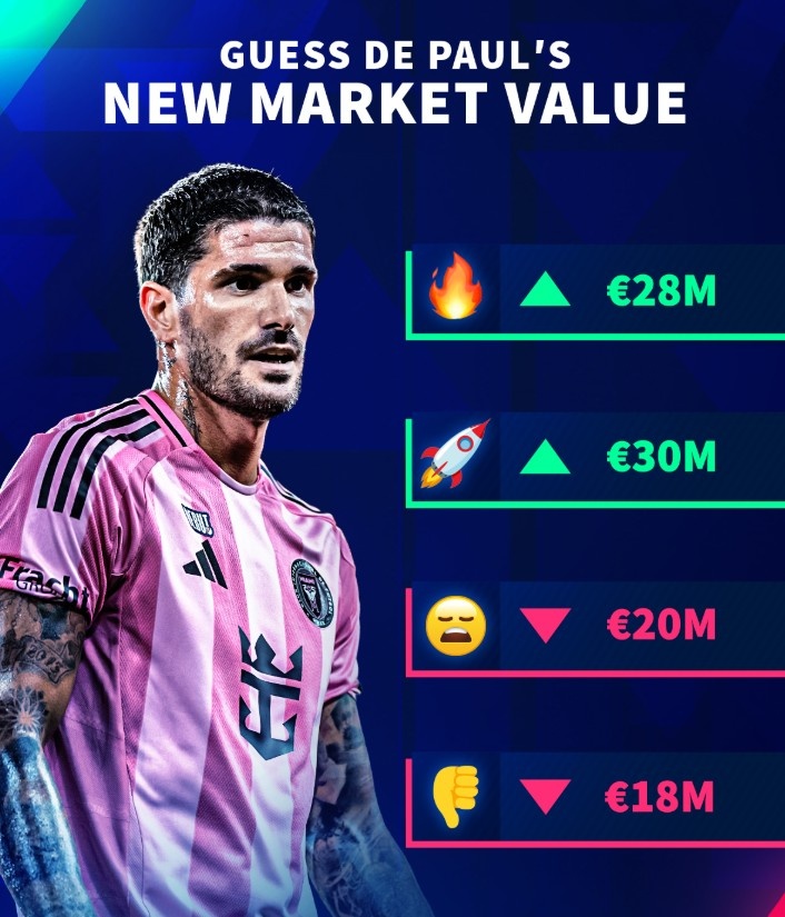 9月12日訊 德國轉會(huì )市場(chǎng)宣布,將在9月12日更新美職聯(lián)球員的身價(jià),并預告了今夏加盟邁阿密的德保羅。