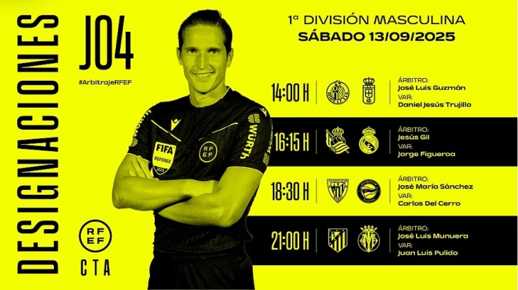 9月12日訊 本周末,西甲聯(lián)賽將重燃戰火,西班牙足協(xié)官方公布了當地時(shí)間9月13日4場(chǎng)比賽的裁判安排。其中,赫蘇斯-吉爾執法皇馬客戰皇家社會(huì ),穆努埃拉主裁馬競主場(chǎng)迎戰黃潛。