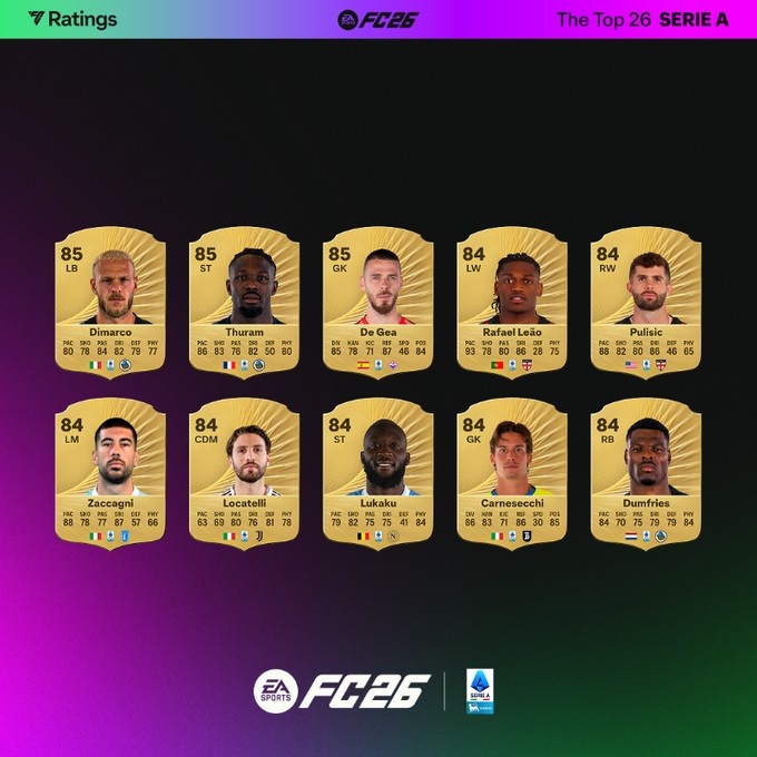 9月13日訊 FC26公布了意甲球員評分榜,其中勞塔羅居首,具體如下: