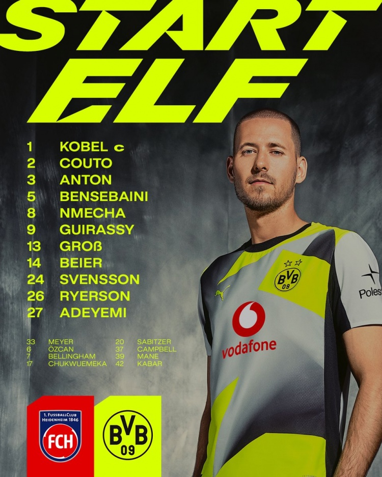 9月13日訊 北京時(shí)間今晚9點(diǎn)半,德甲第3輪海登海姆vs多特蒙德,此役雙方首發(fā)已經(jīng)公布。