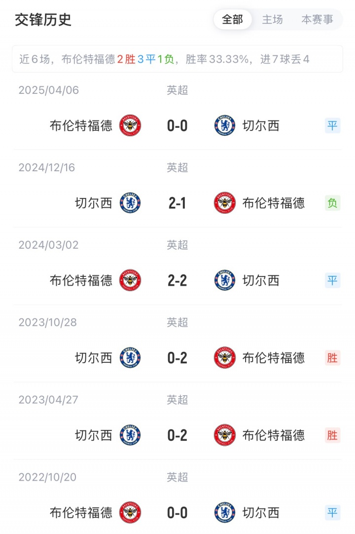 切爾西開(kāi)賽以來(lái)2勝1平,布倫特福德則是1勝2負。切爾西對布倫特福德已三場(chǎng)不敗。